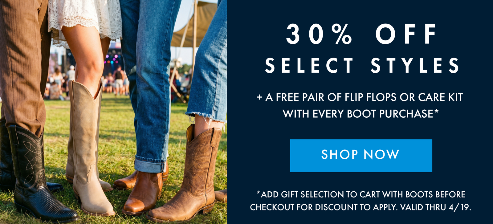 + FREE FLOPS OR CARE KIT WITH EVERY BOOT PURCHASE